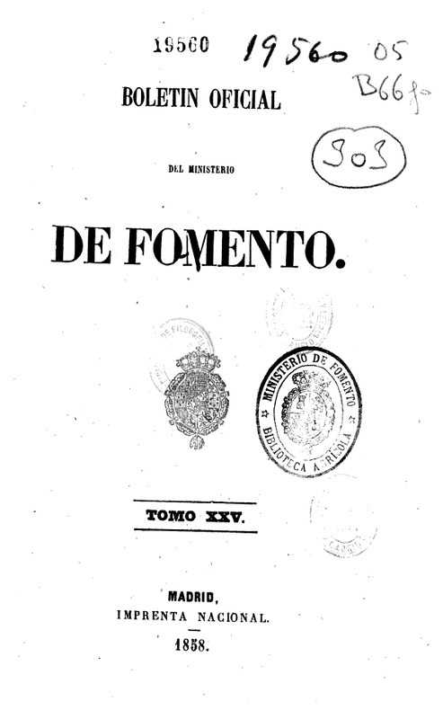 Boletín oficial del Ministerio de Fomento ‐ [1858 v.25(n.315-326)]