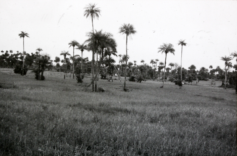 [Zona de cultivos y palmeras, al fondo montañas en Ifni]