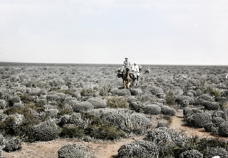 [Hombres cruzando el llano o rasa en dromedario. Ifni]