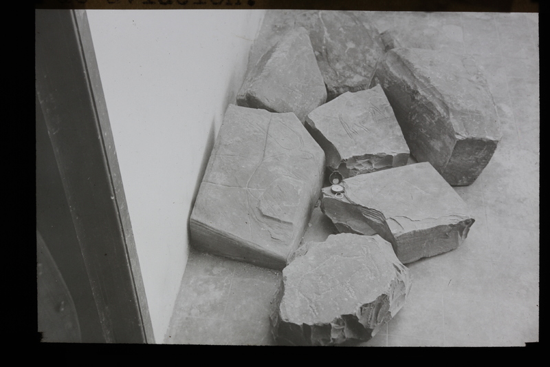 - H-Pacheco- V-41. Grabados prehistóricos en bloques de caliza devónica, procedentes del campo de aviación. Fot