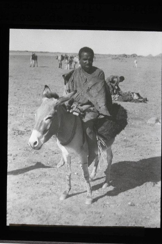 - Pozo de Zug. Sahara español-tipo indigena sobre un asno