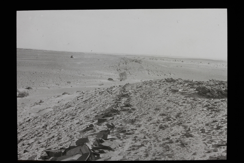 - Mirando al norte. Exp. H-P. Abril-mayo 1941. Lomas de areniscas y calias dev, en las inmediaciones del campo de aviación de Smara