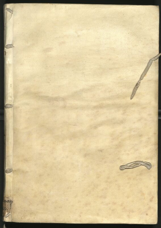 - Ex-libris de la Biblioteca Complutense Ildefonsina. En la segunda hoja está rota la parte inferior derecha, con pérdida de diagramas matemáticos. Encuadernación de pergamino