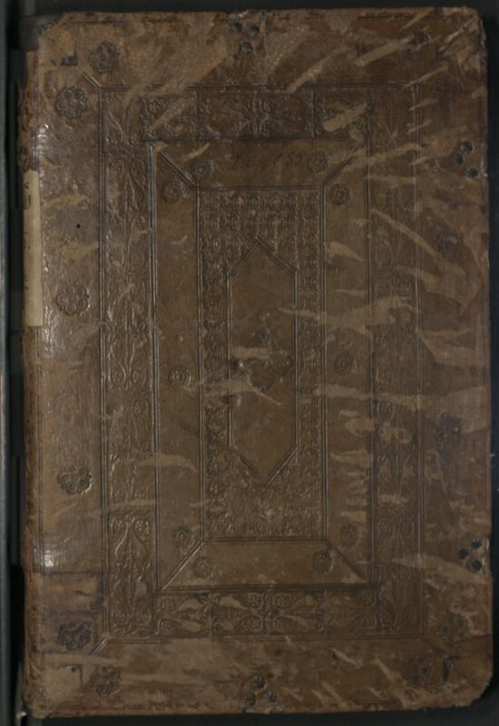 - Ex-libris ms. del Colegio de la Compañía de Jesús de Alcalá. Ex-libris de la Biblioteca Complutense Ildefonsina. Iniciales y calderones a mano en tinta azul y roja. Encuadernación gótica de piel con hierros sobre tabla.