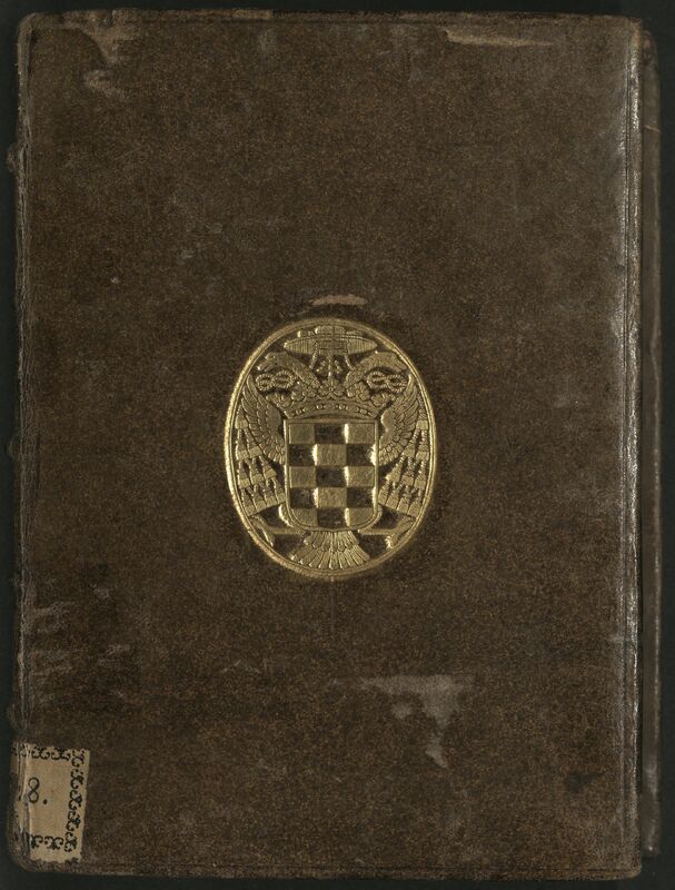 - Ex-libris ms. del Colegio Mayor de Alcalá. Encuadernación de pasta con super-libros de la Universidad de Alcalá.