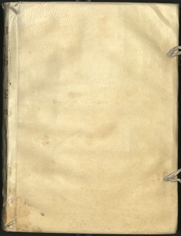 - Ex-libris ms. del Colegio Mayor de Alcalá. Encuadernación de pergamino. Encuadernado con otra obra.
