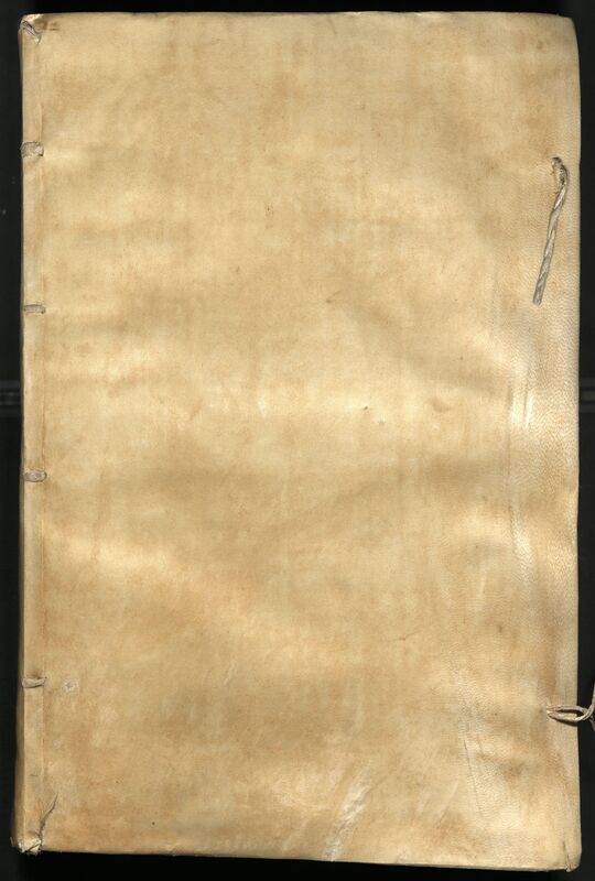 - Ex-libris ms. del Colegio Mayor de Alcalá. Encuadernación de pergamino