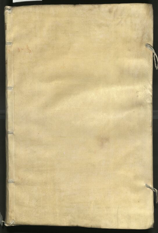 - Ex-libris ms. del Colegio Mayor de Alcalá. Encuadernación de pergamino. Encuadernado con otra obra