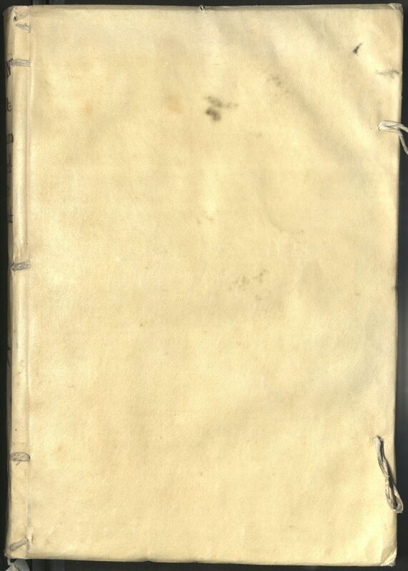 - Ex-libris ms. del Colegio Mayor de Alcalá. Encuadernación de pergamino. Encuadernado con otra obra