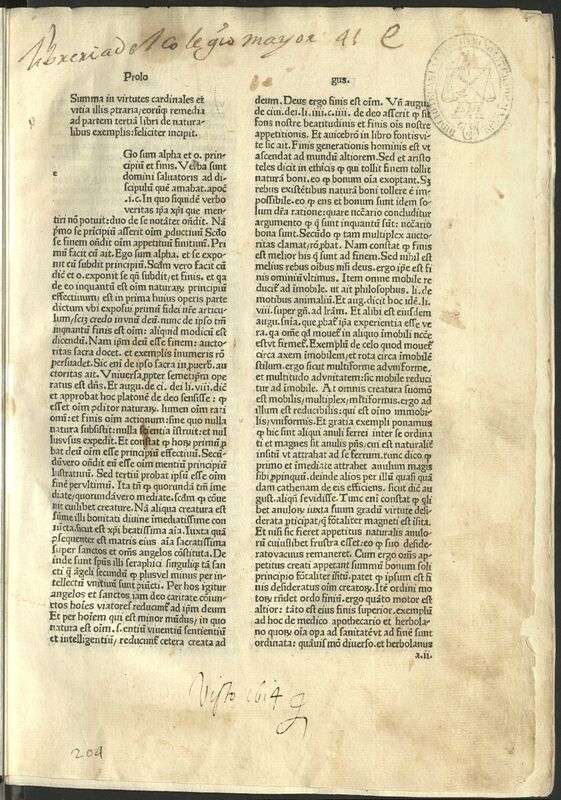 - Ex-libris ms. del Colegio Mayor de Alcalá. Encuadernación de pergamino