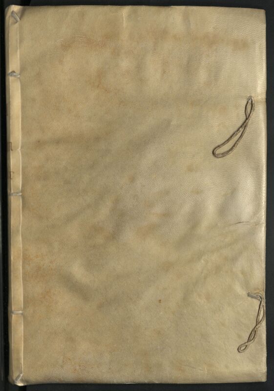 - Firma de Juan Sánchez de Villegas. Ex-libris del Colegio de la Concepción de Alcalá. Encuadernación de pergamino.