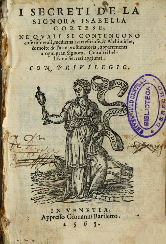 I secreti de la signora Isabella Cortese: ne'quali si contengono cose minerali, medicinali, arteficiose & alchimiche & molte de l'arte profumatoria, apparenti a ogni gran Signora : con altri bellissimi secreti aggiunti