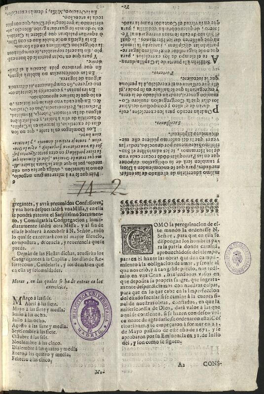 - Ingresó en la Biblioteca Histórica procedente de la Facultad de Filología en 2000. Falta la hoja I. Anotaciones musicales y diagramas mss. La tinta ha perforado el papel en algunas hojas. Encuadernación de piel con hierros.