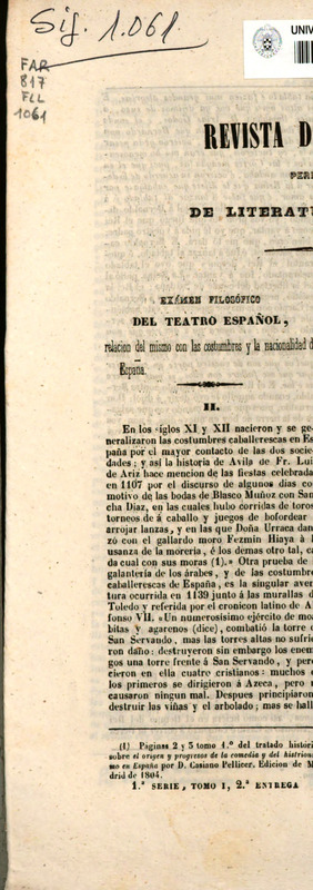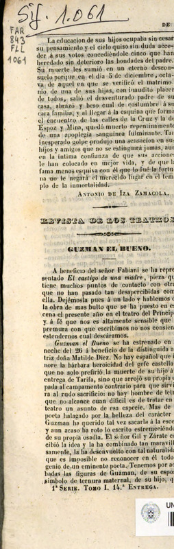 Revista de teatros : periódico semanal de literatura, sátira y bellas artes ‐ [1º Serie, T. 1, n. 1 (pag. 9-16)]
