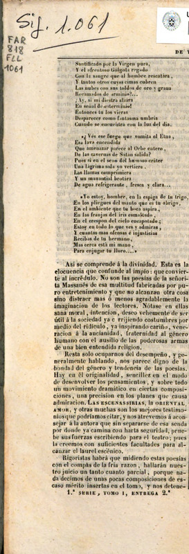 Revista de teatros : periódico semanal de literatura, sátira y bellas artes ‐ [Suplemento al n. 9 del 22 diciemb 1841 (pag. 1-4)]