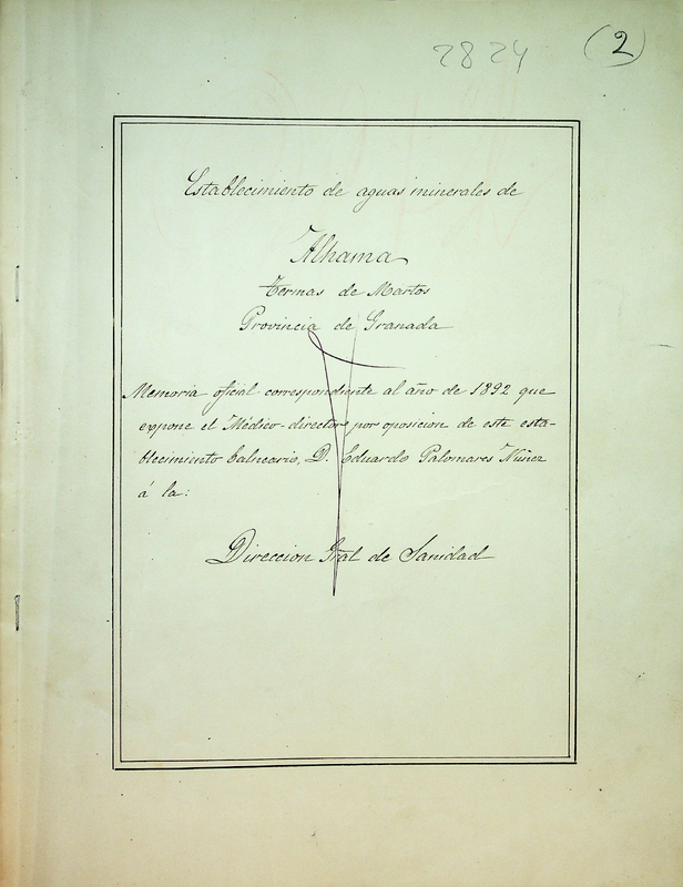 Establecimiento de aguas minerales de Alhama, termas de Martos, provincia deGranada : memoria oficial correspondiente al año de 1892 que expone el médico director por oposición de este estabelcimiento balneario á la Dirección Gral deSanidad