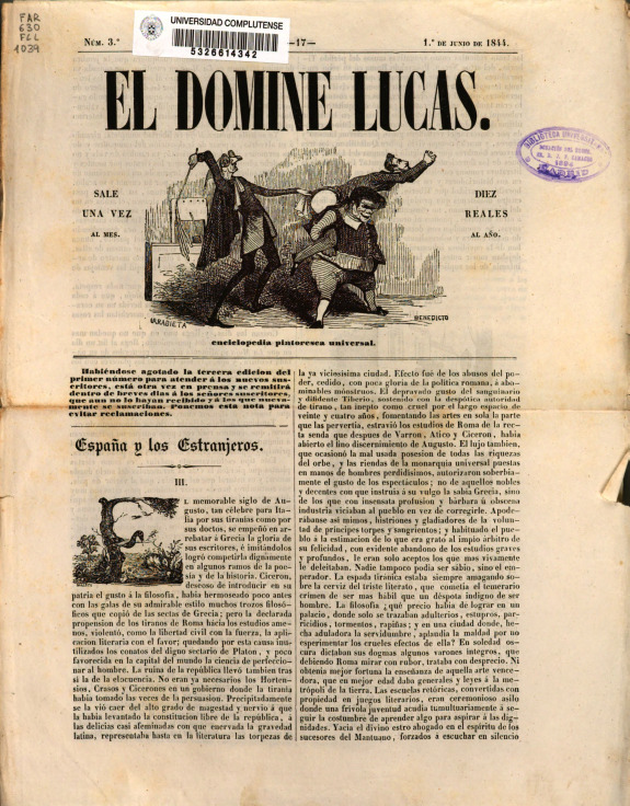 El Domine Lucas : Enciclopedia Pintoresca Universal ‐ [N. 3, Junio de 1844]