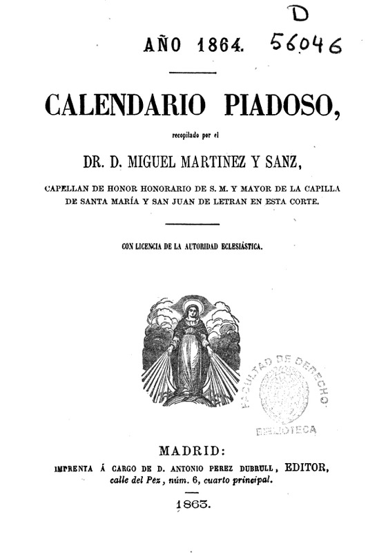 Calendario piadoso ‐ [Año 1864]