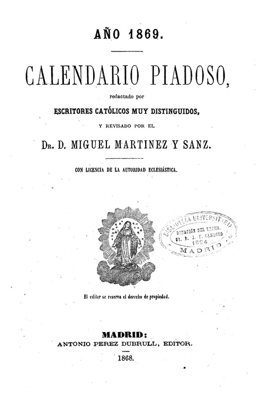 Calendario piadoso ‐ [Año 1869]