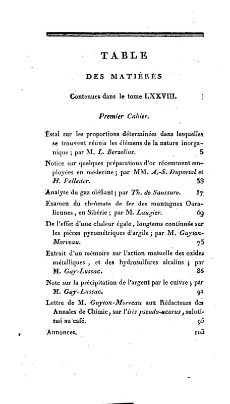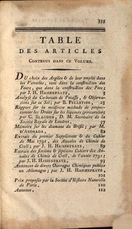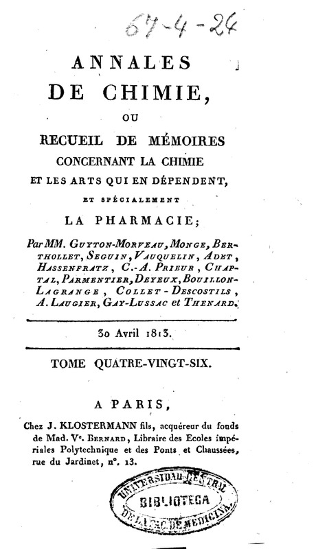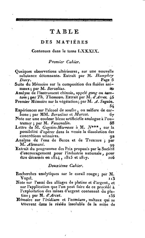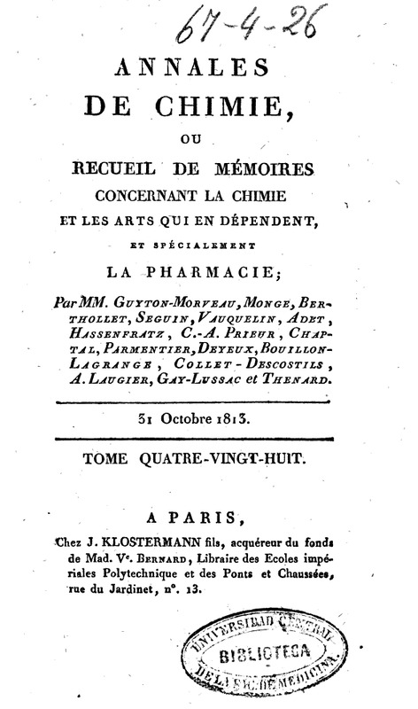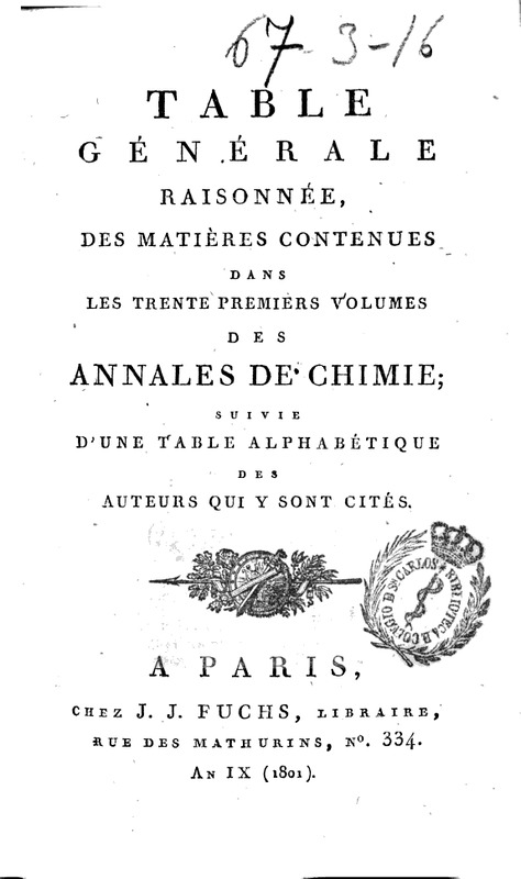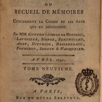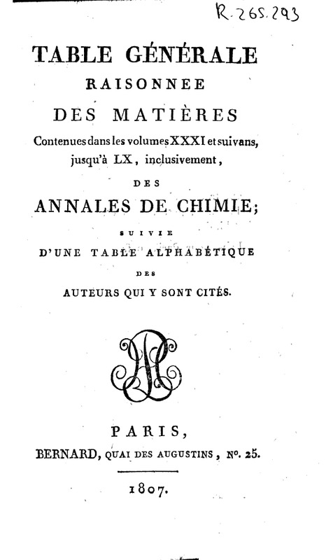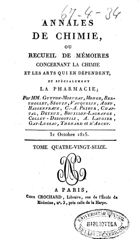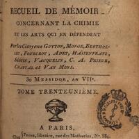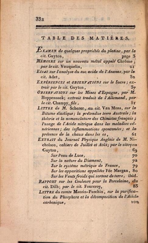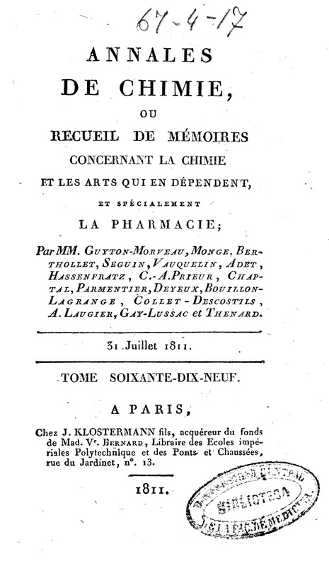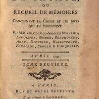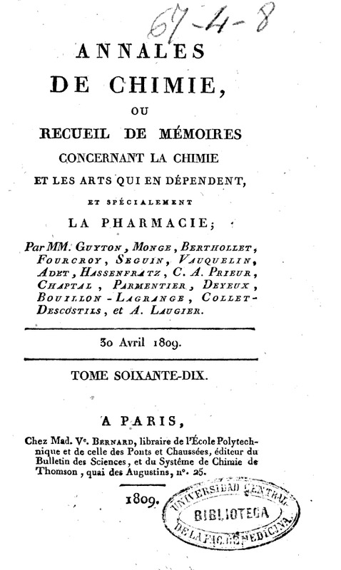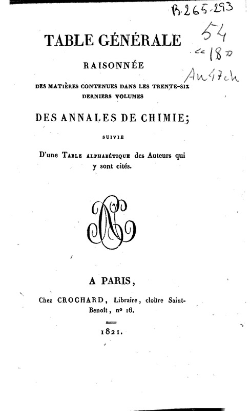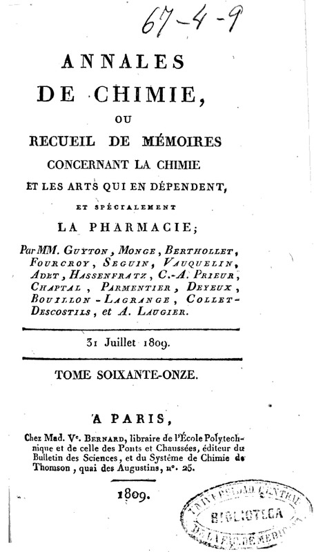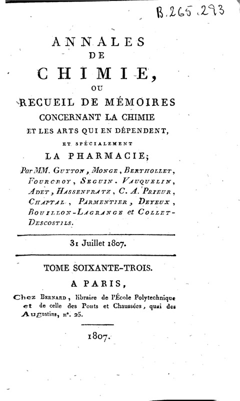 - Annales de chimie ou Recueil de mémoires concernant la chimie et les arts qui en dépendent