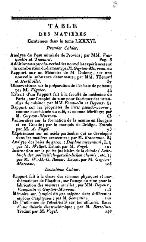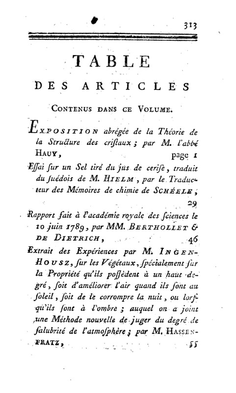 Annales de chimie ou Recueil de mémoires concernant la chimie et les arts qui en dépendent ‐ [Table 1 (1-30)]