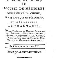 - Annales de chimie ou Recueil de mémoires concernant la chimie et les arts qui en dépendent et espécialement la pharmacie