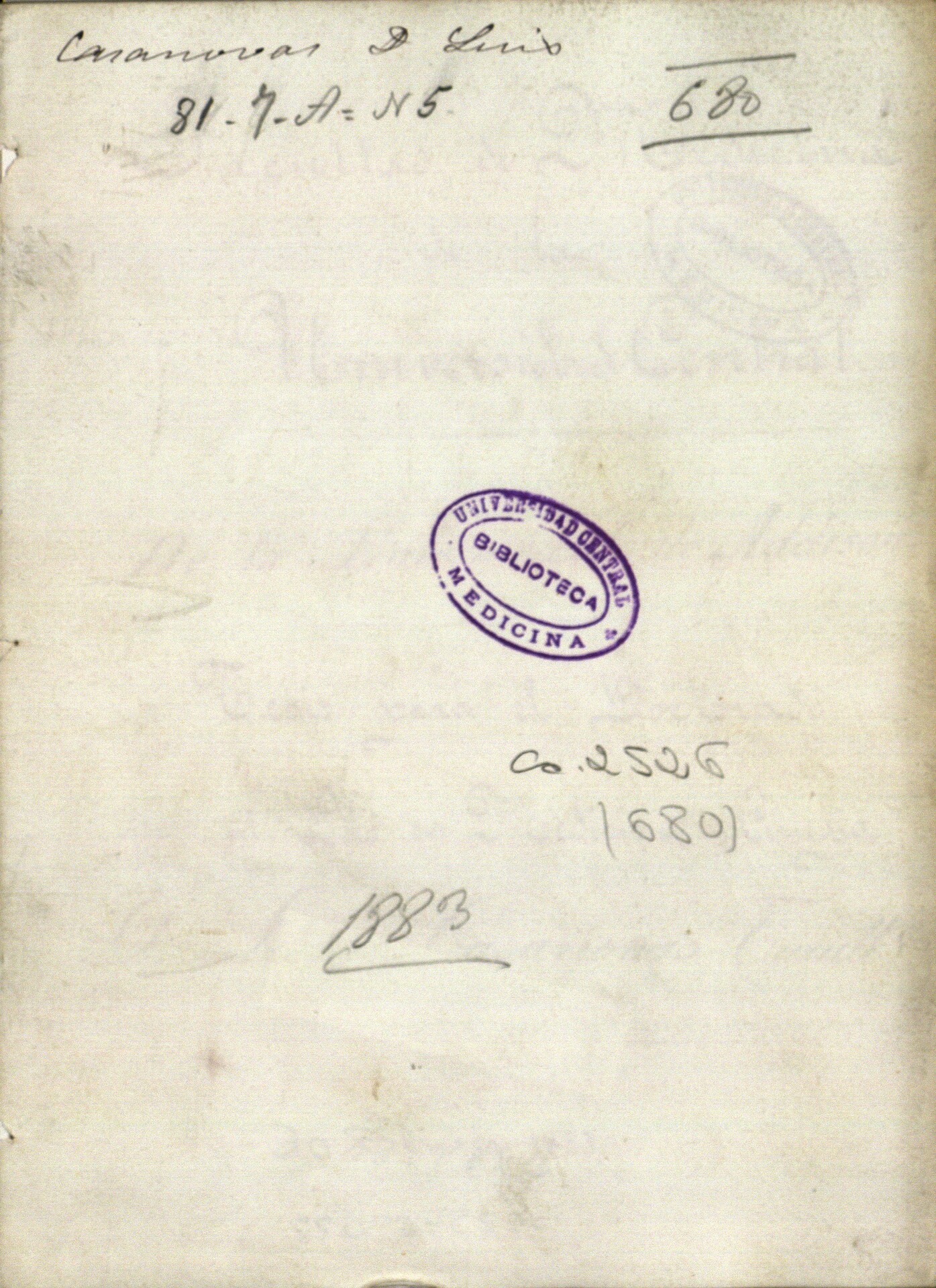 - Tesis de doctorado presentada en la Universidad Central, el 14 de abril de 1883 (No constan miembros del tribunal)