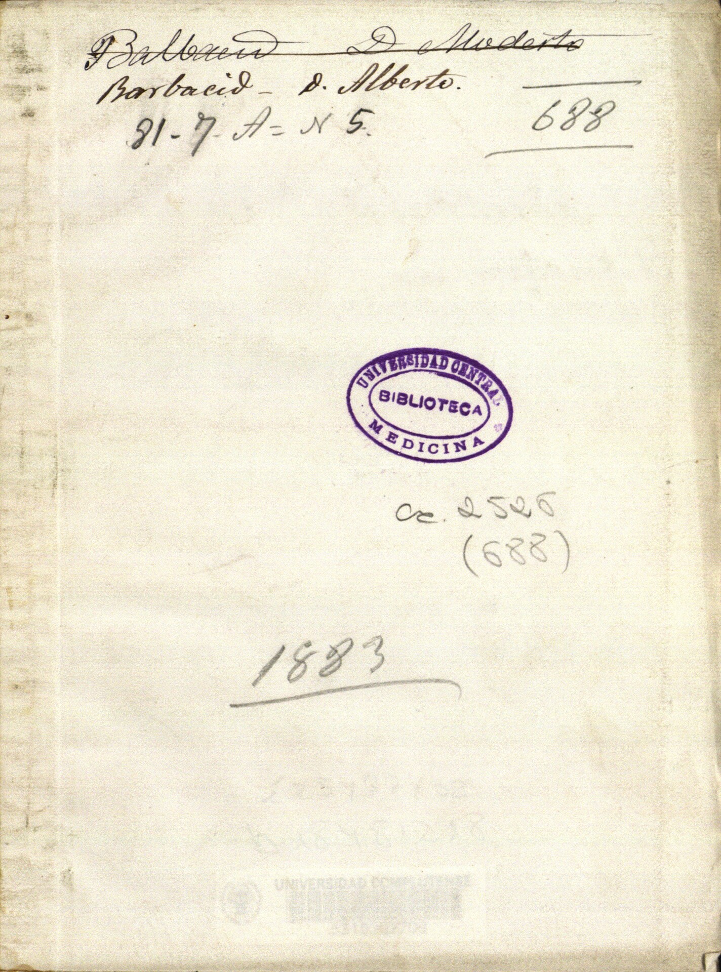 - Tesis de doctorado leída en la Universidad Central el 18 de junio de 1883 (No constan miembros del tribunal ni calificación obtenida)