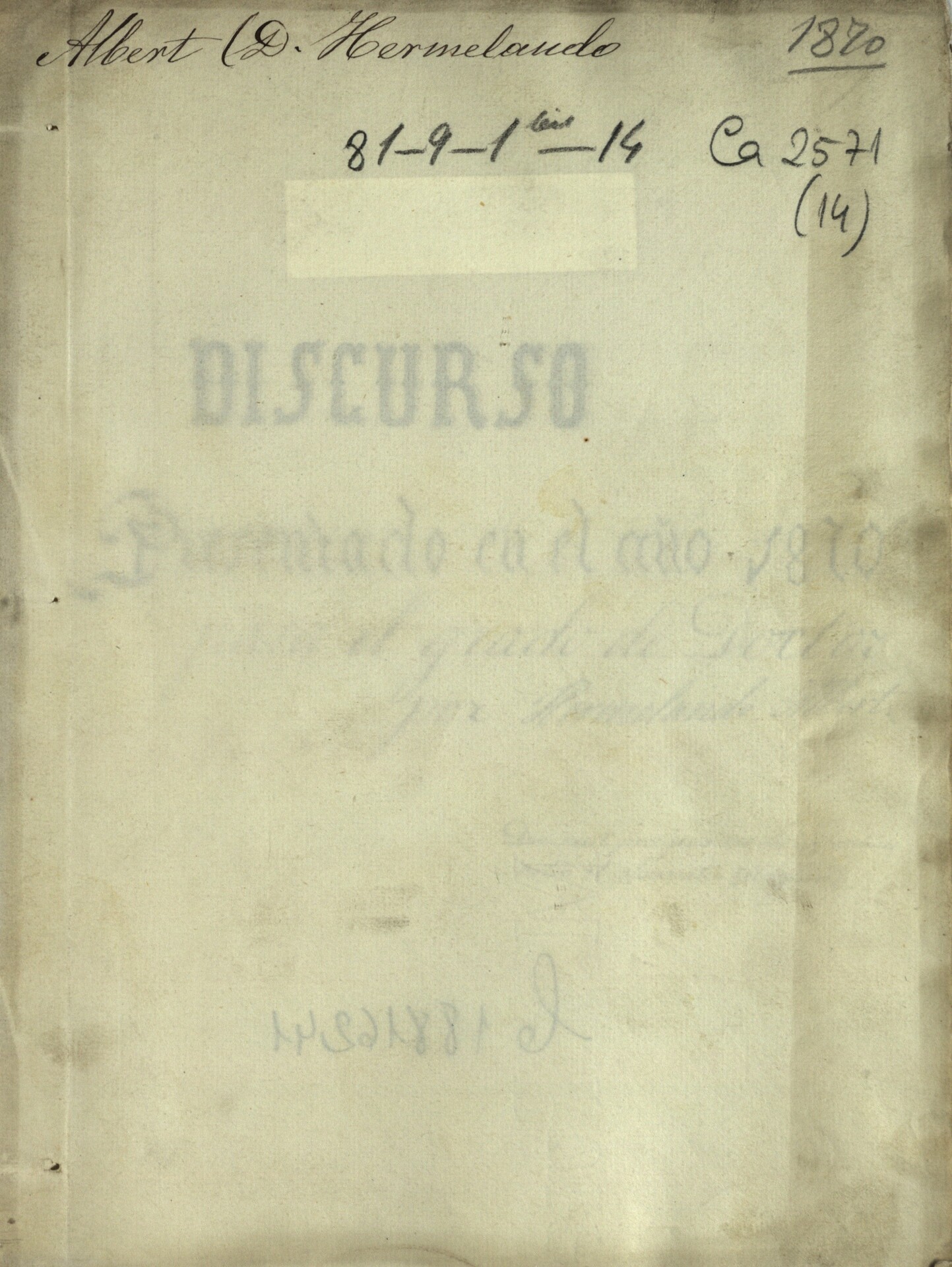 [Origen de las ciencias médicas] : discurso presentado ... para el grado de Doctor por Hermelando Albert