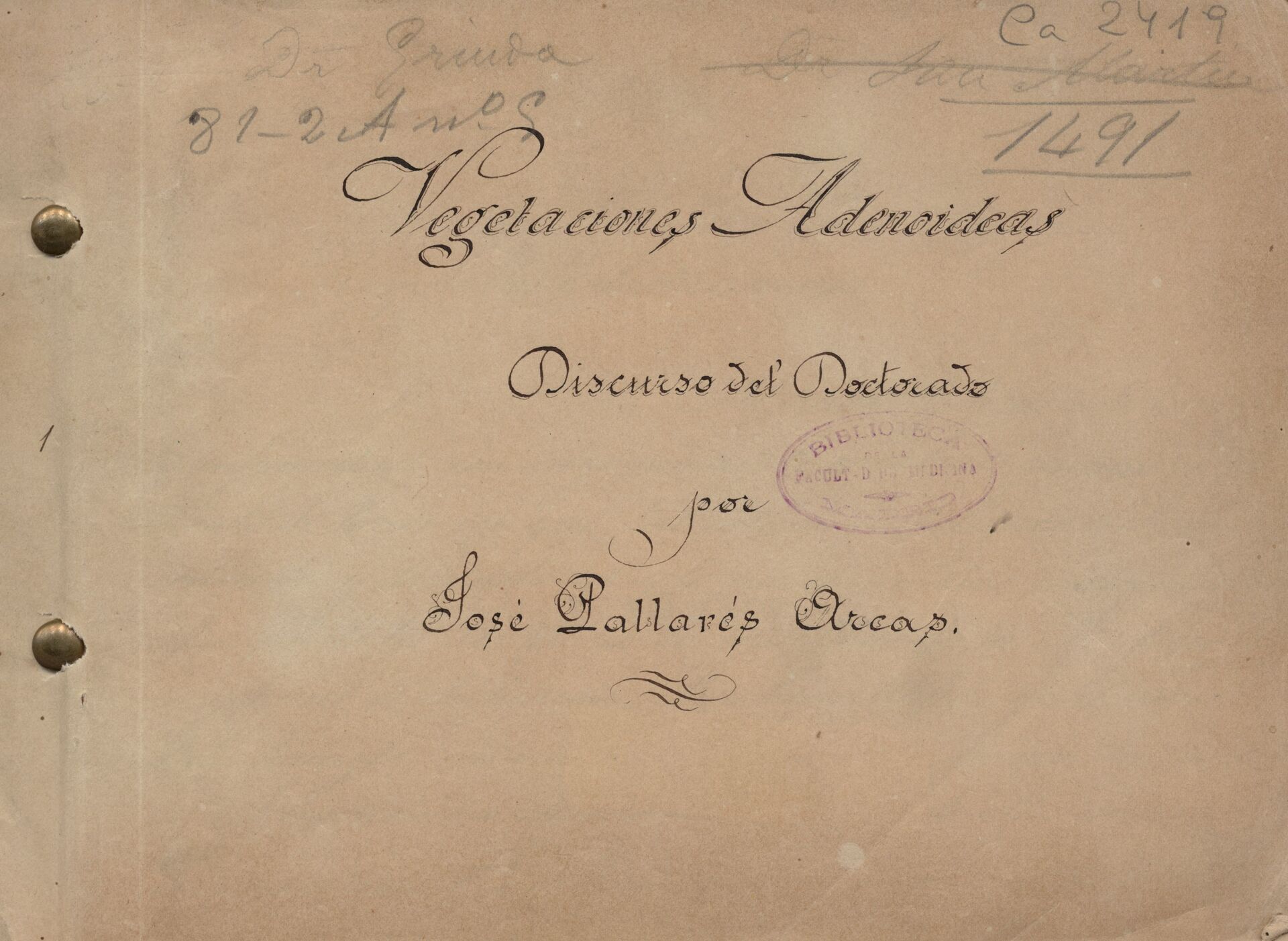Vegetaciones adenoideas : discurso del doctorado