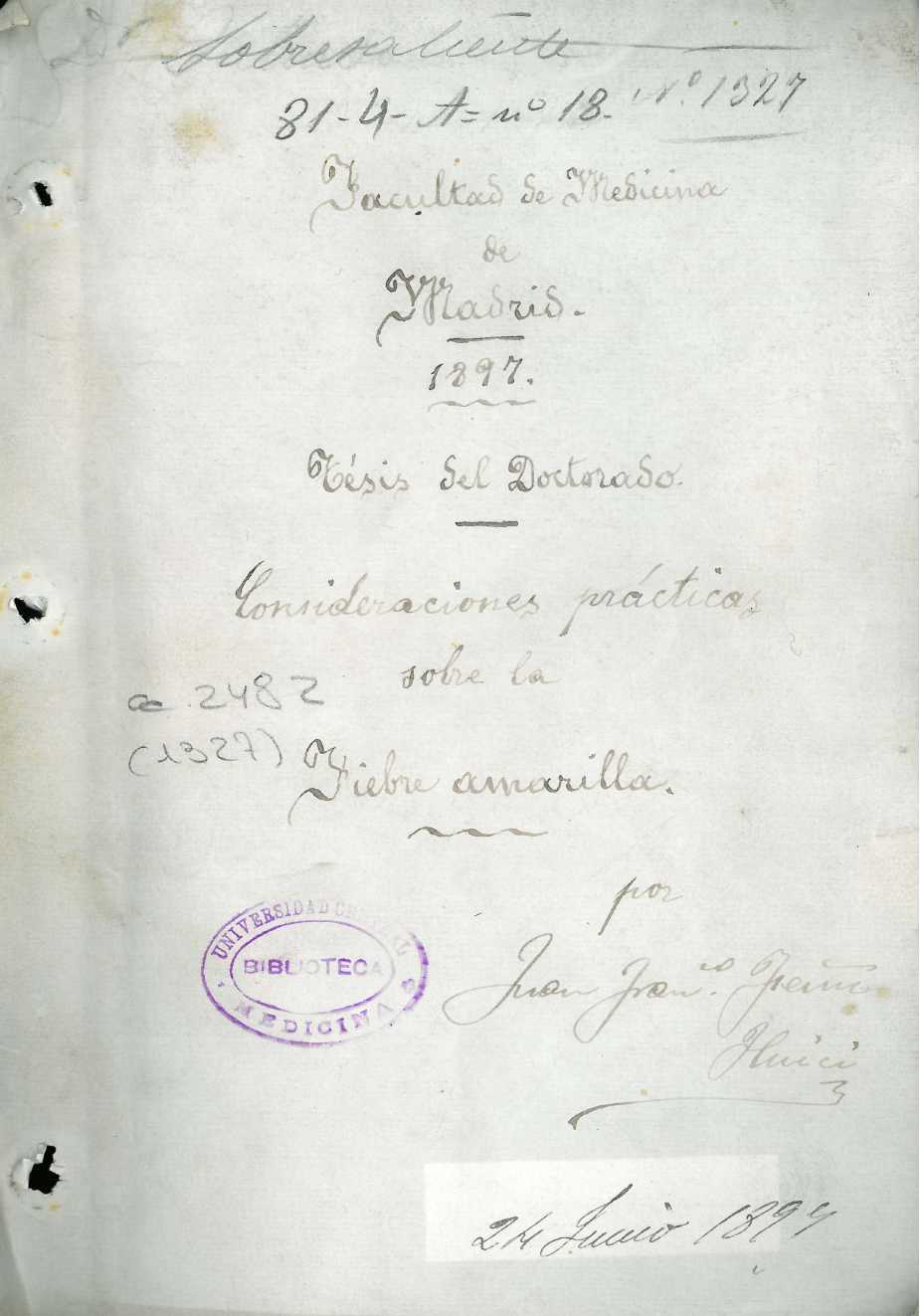 - Tesis de doctorado leída en la Universidad Central el 11 de noviembre de 1895