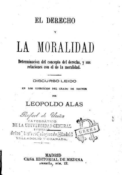 - Tesis de doctorado leída en la Universidad Central en 1882 (No constan miembros del tribunal ni calificación obtenida)