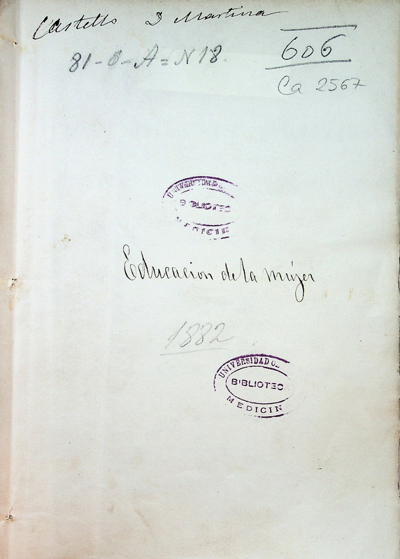 [De la necesidad de encaminar por una nueva senda la educación higiénico-moral de la muger] : discurso para obtar al grado de Doctor ... presentado por Dolores Aleu y Riera