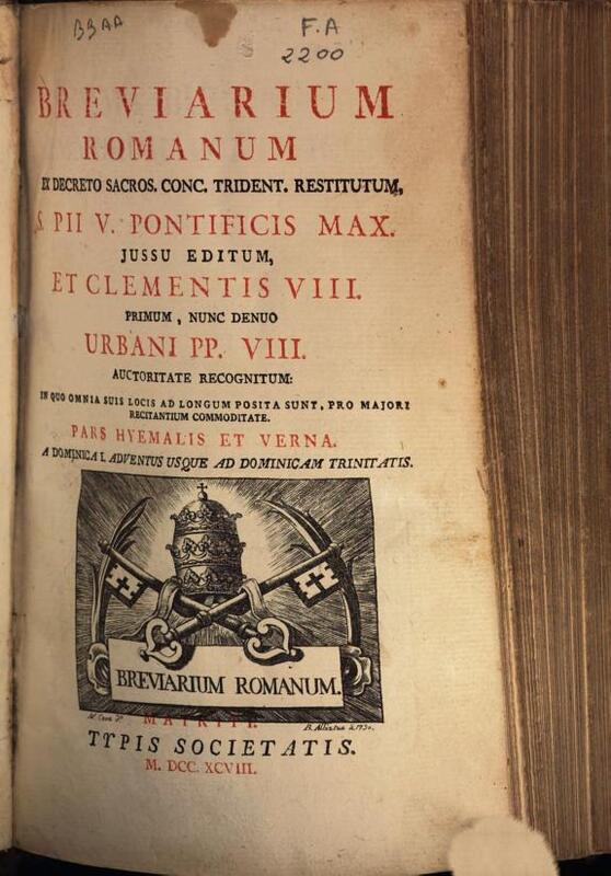Breviarium Romanum ex decreto sacros. Conc. Trident. restitutum, S. Pii V ... jussu editum ..