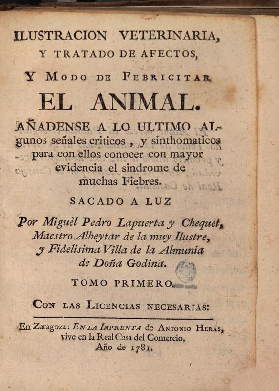Ilustración veterinaria : y tratado de afectos y modo de febricitar el animal... : tomo primero