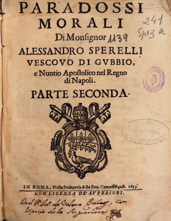 Paradossi morali di ... Alessandro Sperelli vescono di Gubbio ... ; Parte seconda