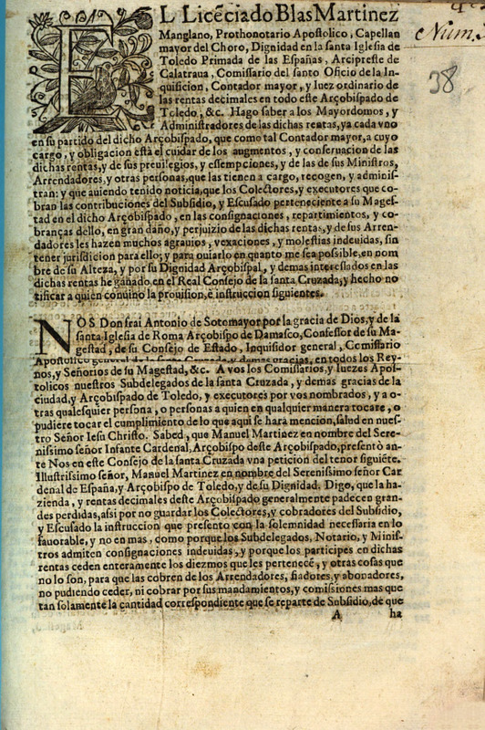 El licenciado Blas Martinez Manglano ... hago saber a los mayordomos y administradores de las dichas rentas ..