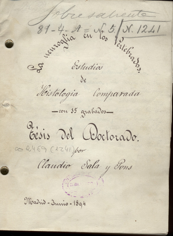 - Tesis de doctorado leída en la Universidad Central el 23 de junio de 1894