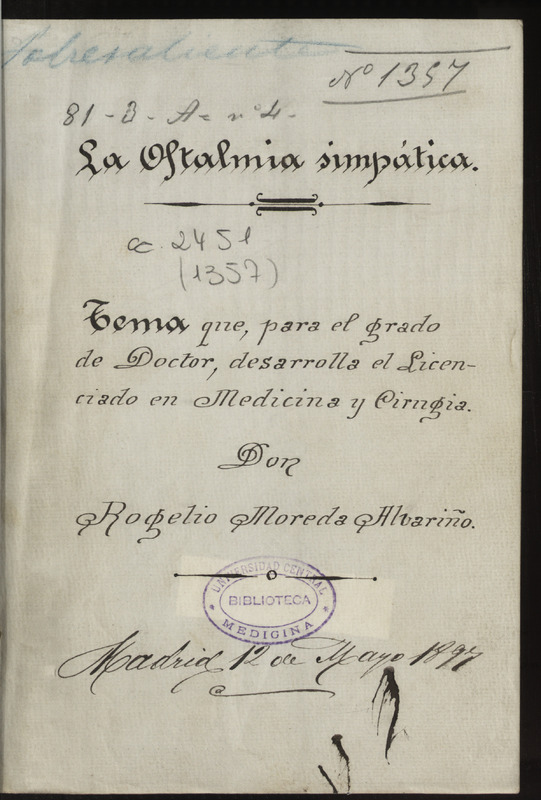 - Tesis de doctorado leída en la Universidad Central el 28 de mayo de 1897