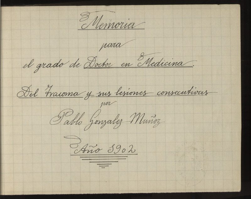 Del tracoma y sus lesiones consecutivas : memoria para el grado de doctor en Medicina, año 1902