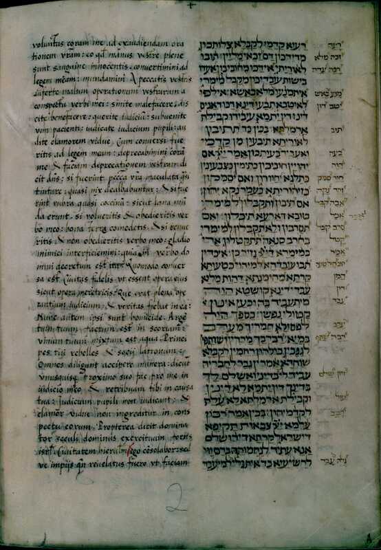 - Contiene el texto hebreo, con la versión interlineal latina de Alfonso de Zamora y con notas marginales. Es una copia de algún ejemplar anterior de la traducción latina interlineal, de Alfonso de Zamora y Pedro Ciruelo. Textos completos