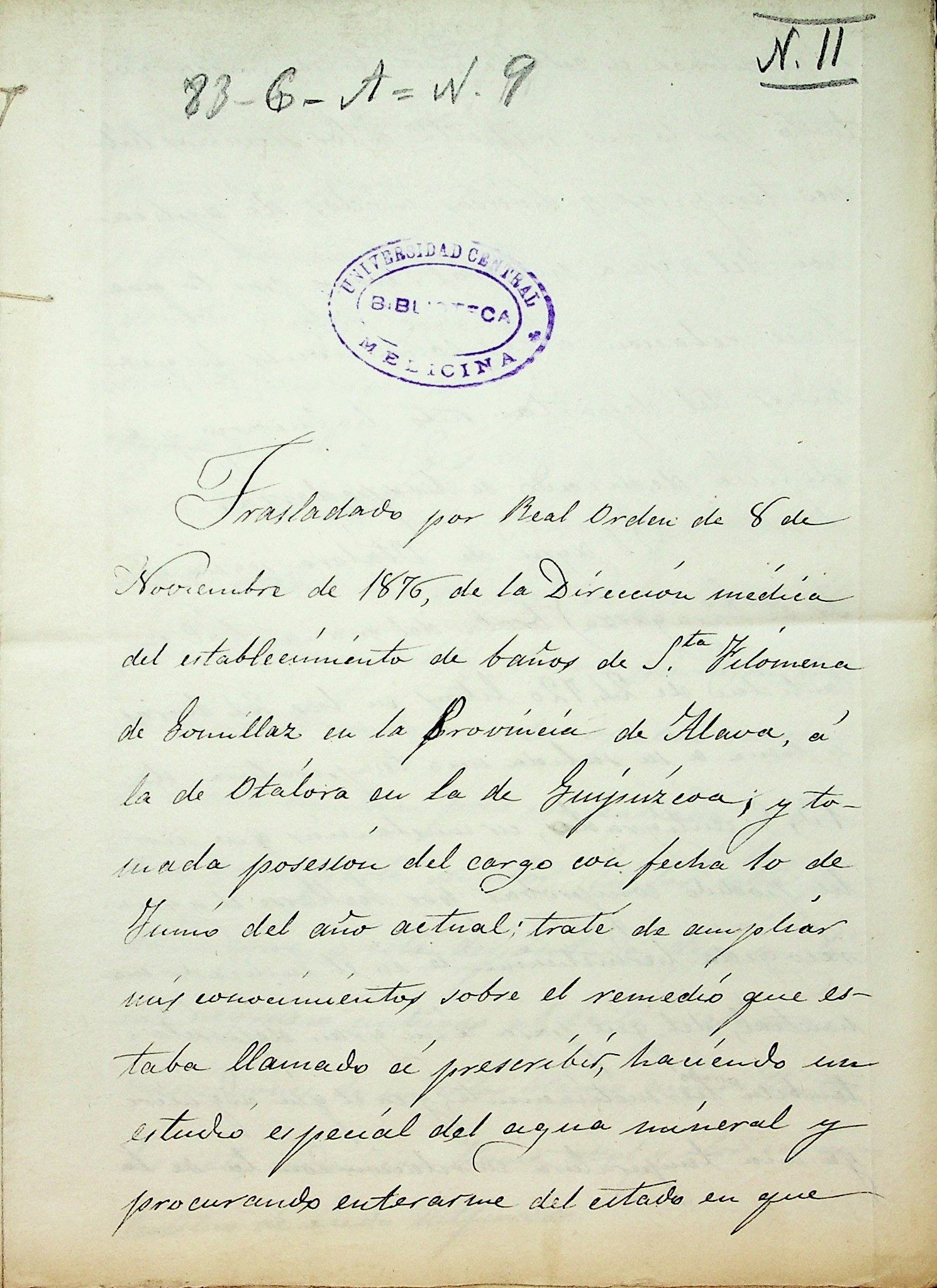 [Memoria de los baños de Otálora, en la temporada de 1877]