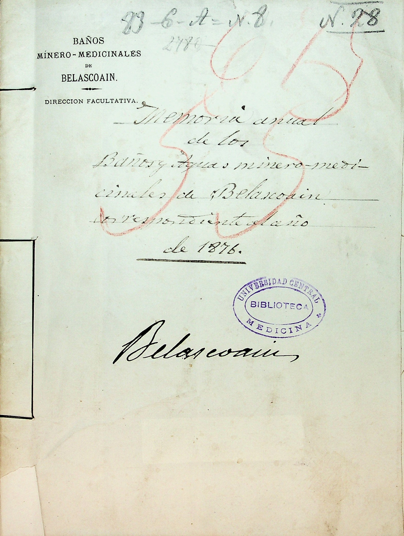 Memoria anual de los baños y aguas mínero-medicinales de Belascoain,correspondiente al año 1876