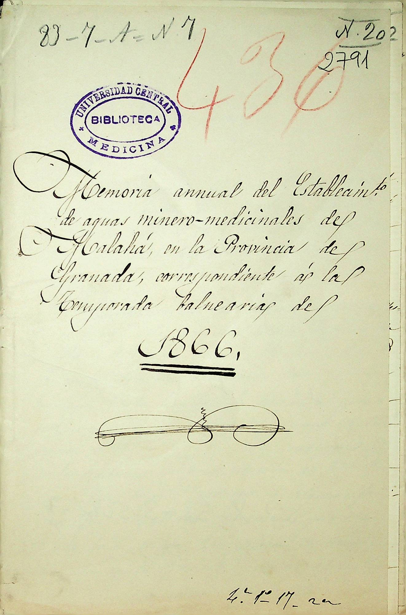 Memoria annual del establecimiento de aguas minero-medicinales de Malahá, en la provincia de Granada, correspondiente á la temporada balnearia de 1866