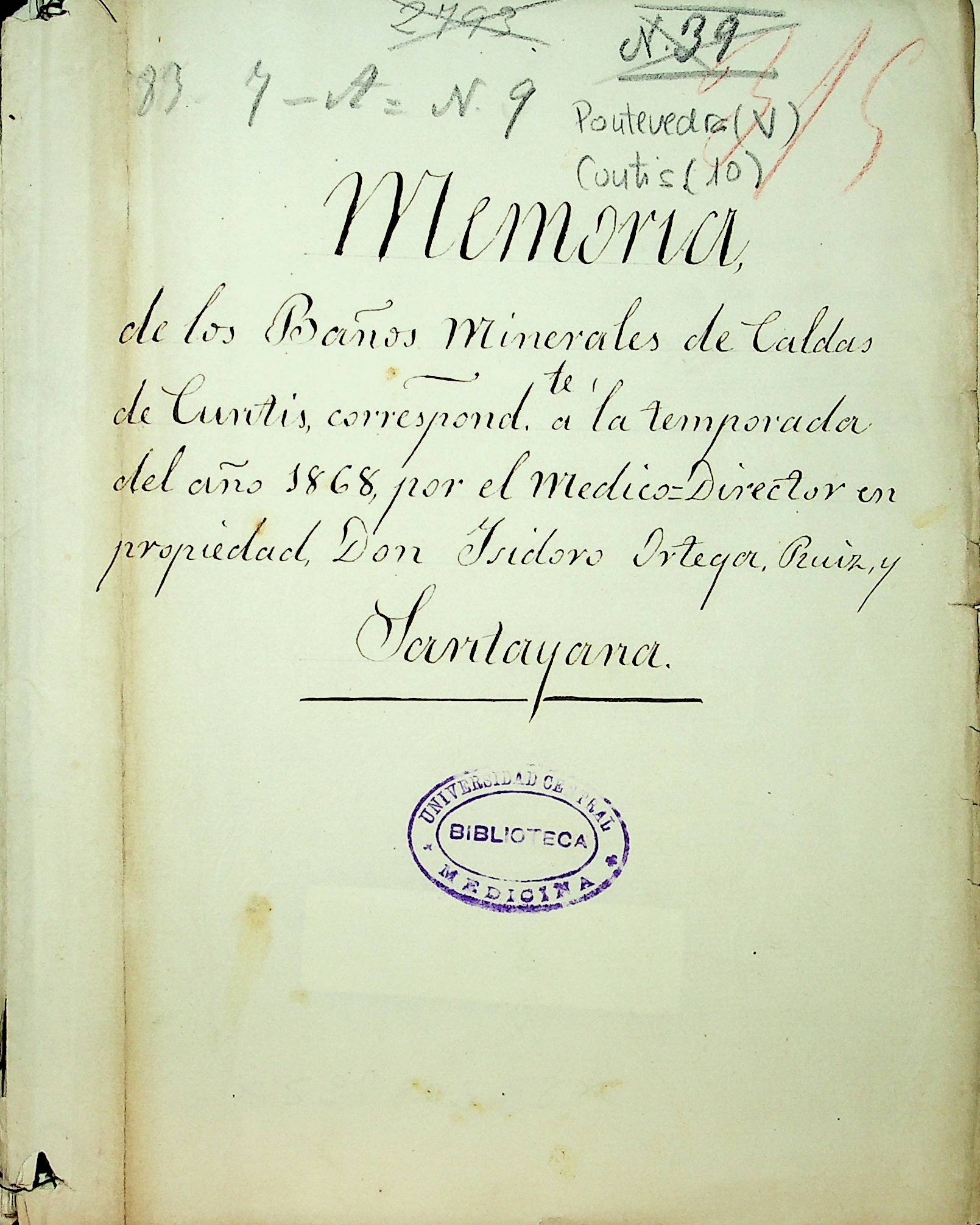 Memoria de los baños minerales de Caldas de Cuntis, correspondiente á la temporada del año 1868