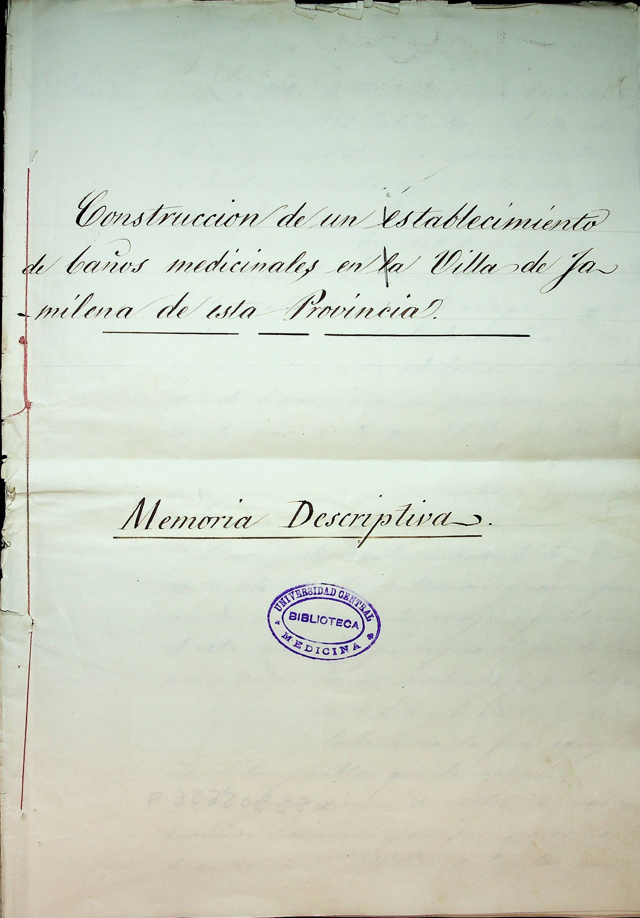 Construcción de un establecimiento de baños medicinales en la villa de Jamilena de esta provincia : memoria descriptiva