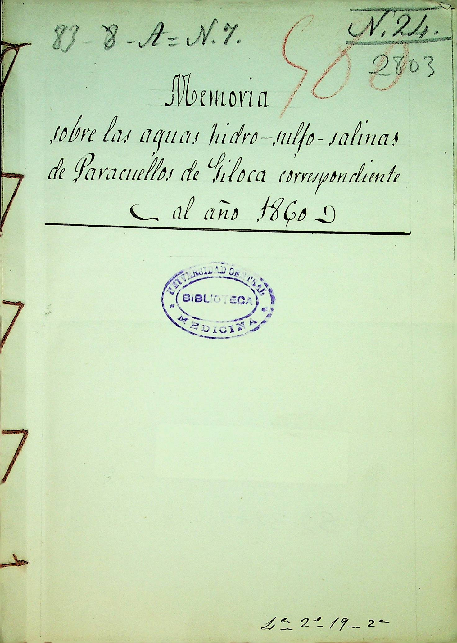 Memoria sobre las aguas hidro-sulfo-salinas de Paracuellos de Giloca correspondiente al año 1860