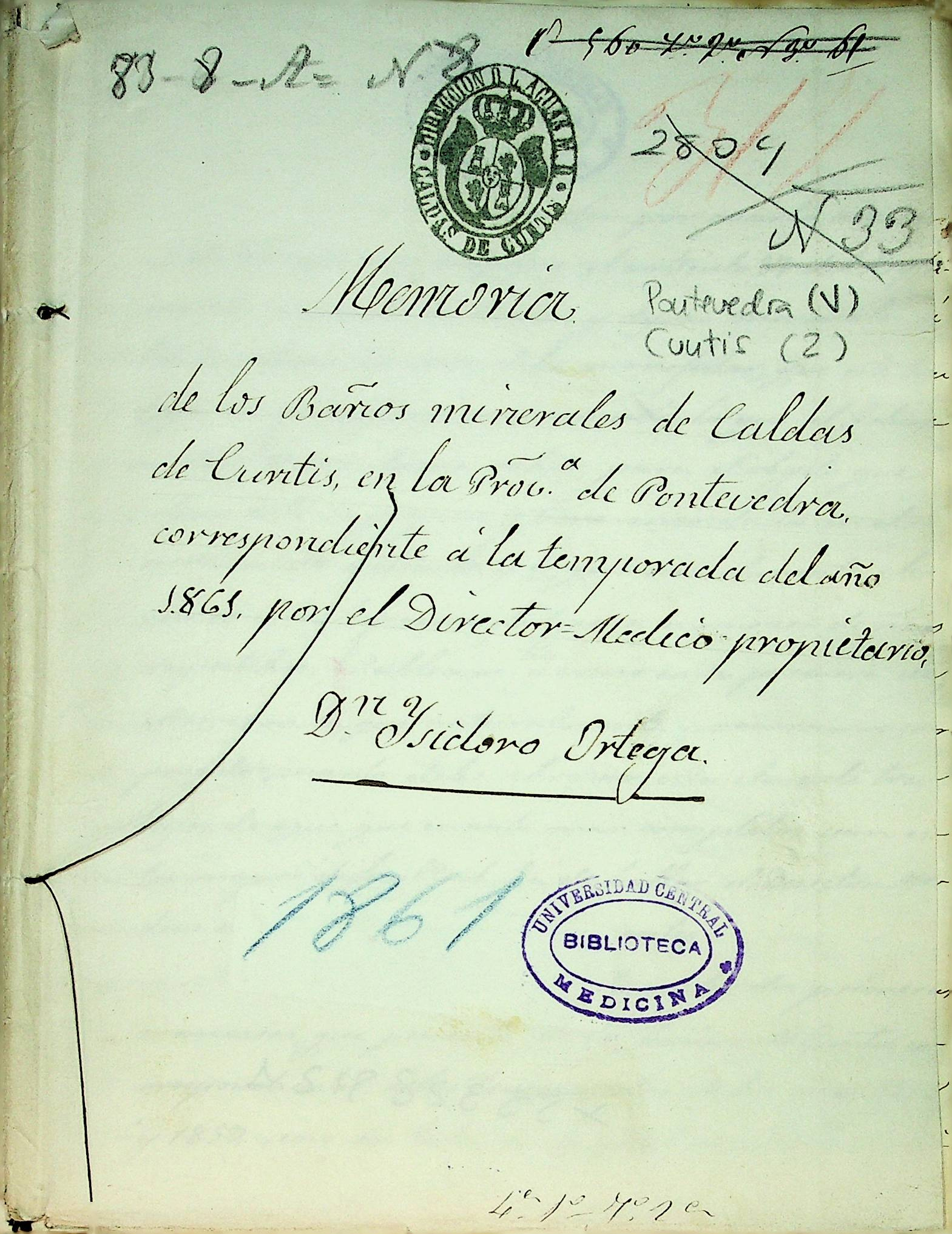 Memoria de los baños minerales de Caldas de Cuntis, provincia de Pontevedra correspondiente á la temporada del año 1861