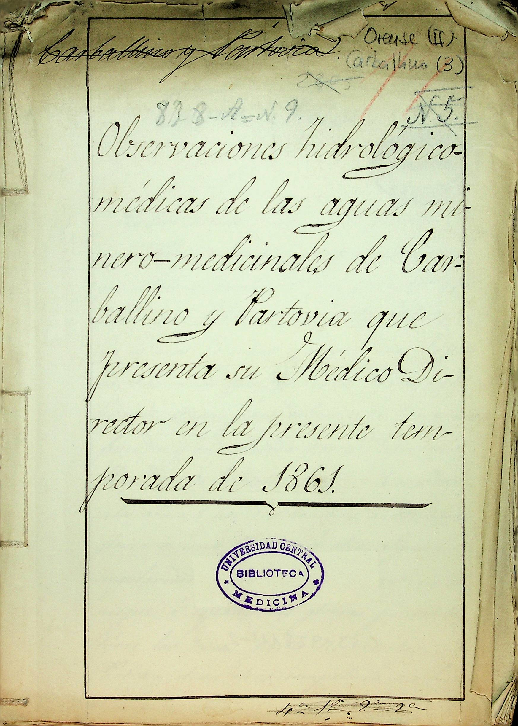 Observaciones hidrológico-médicas de las aguas minero-medicinales de Carballino y Partovia que presenta su Médico Director en la presente temporada de 1861