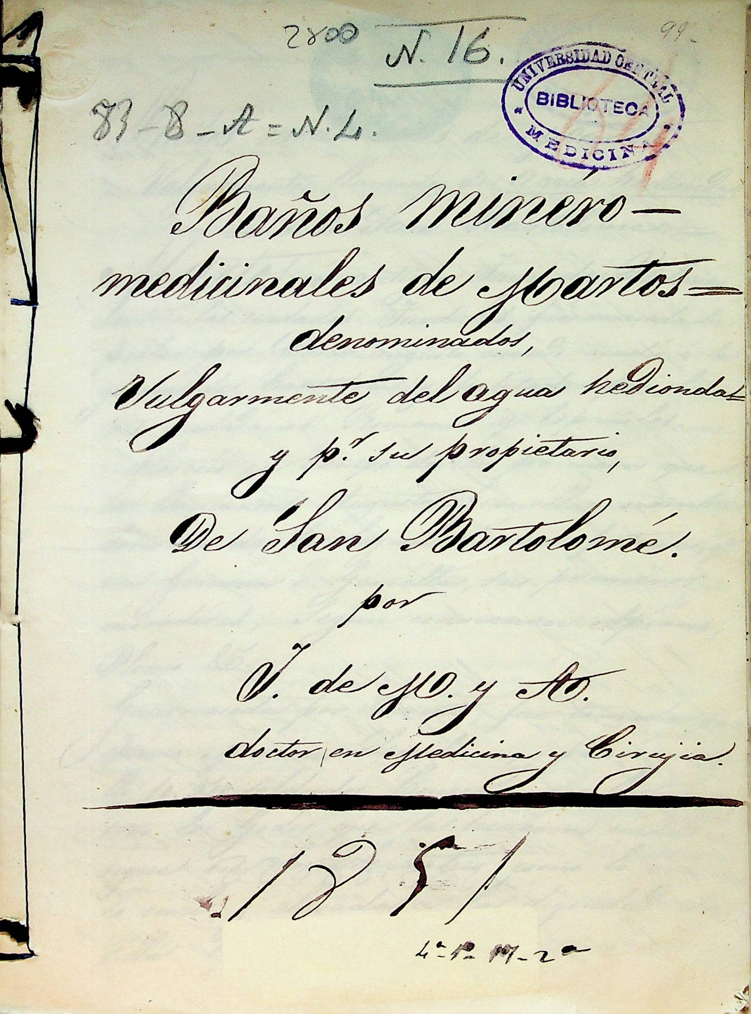 Baños minero-medicinales de Martos,denominados vulgarmente del agua hedionday pro su propietario,De San Bartolomé